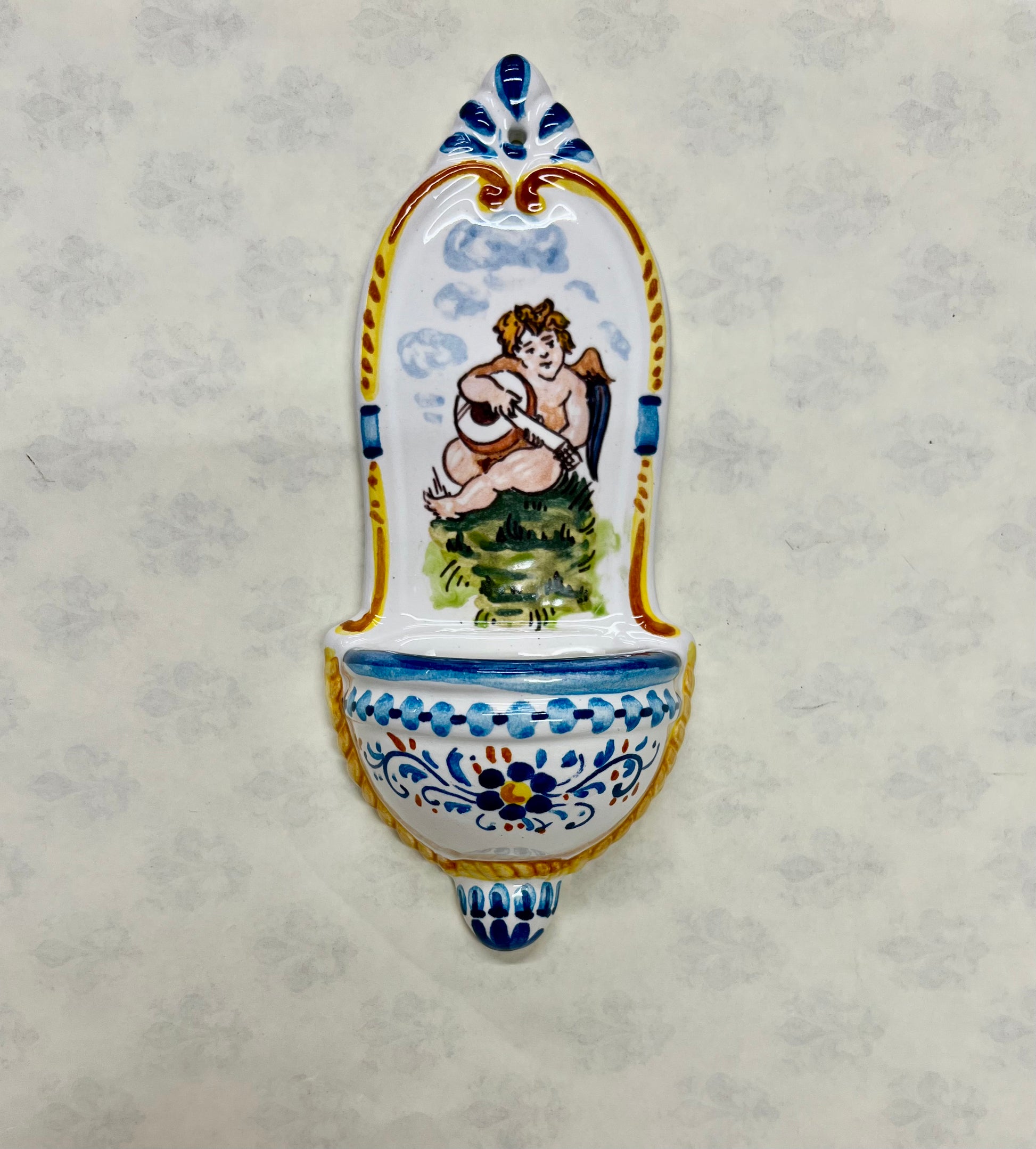 ACQUASANTIERA IN CERAMICA DIPINTA A MANO
