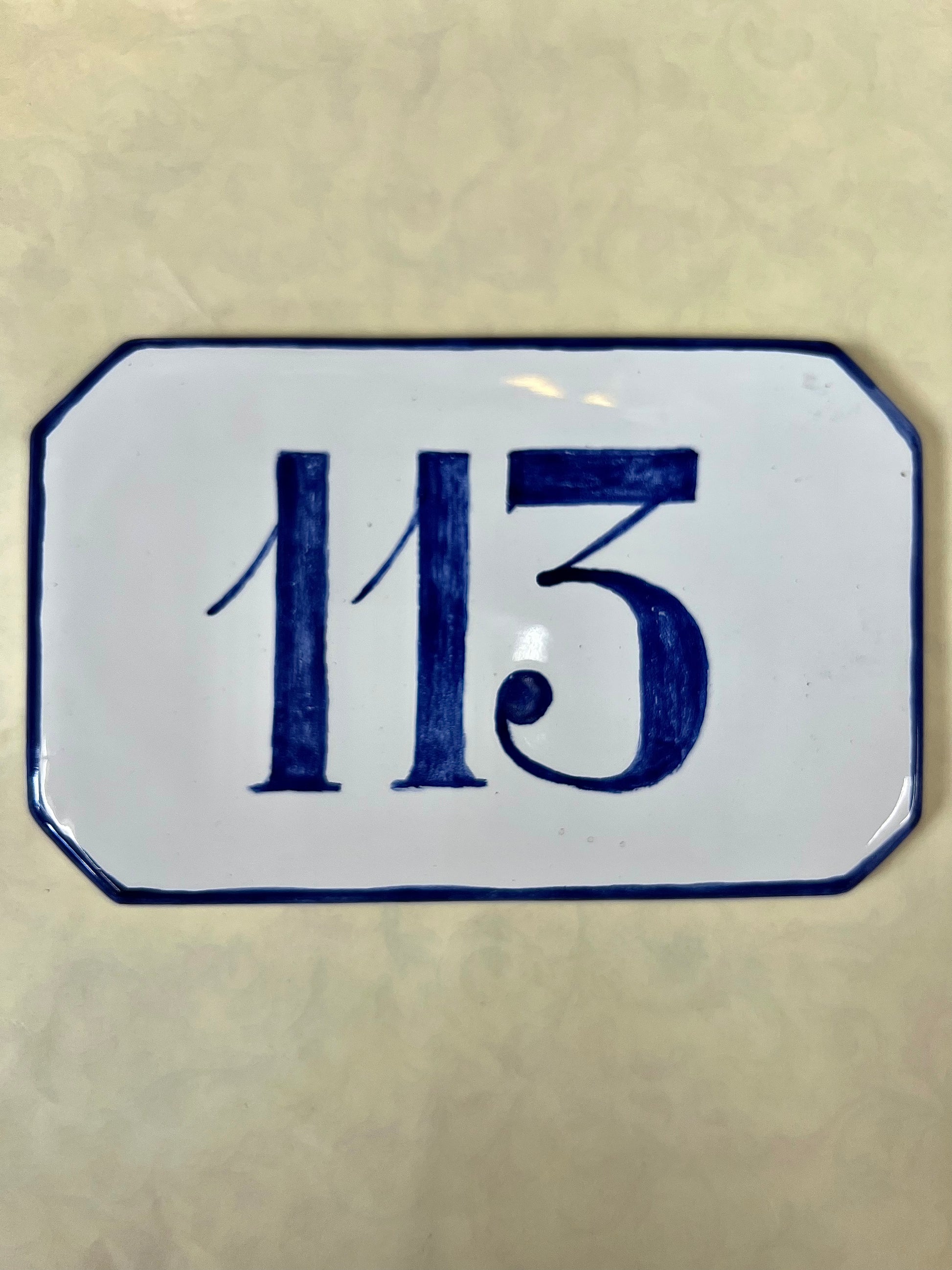 NUMERO CIVICO IN CERAMICA CON FONDO BIANCO E SCRITTA BLU
