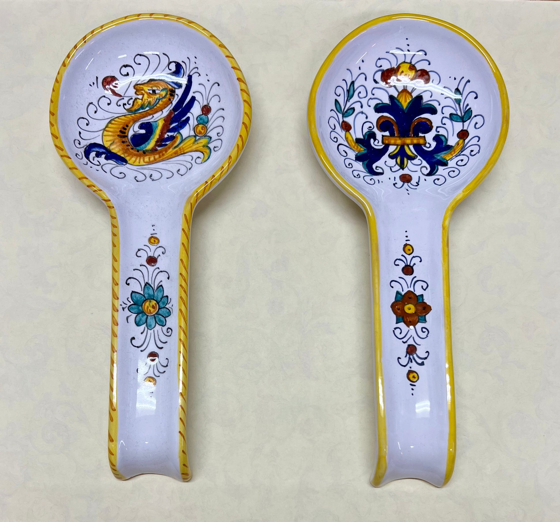 POGGIAMESTOLI STILE DERUTA CON DETTAGLI UNICI DIPINTI A MANO